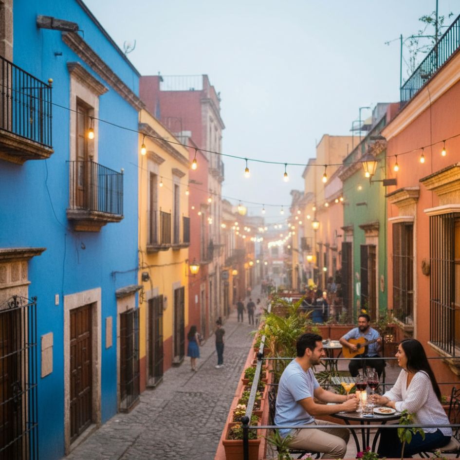 Para una noche más urbana y vibrante, los restaurantes con rooftop en el Centro Histórico de Puebla ofrecen una mezcla de gastronomía de autor y vistas impresionantes de la Catedral iluminada y el Zócalo.